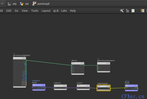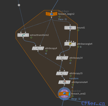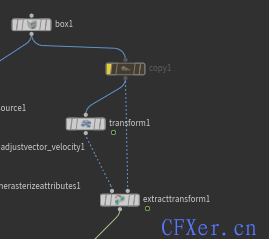 在制作一个场景特效时,比如我们有很多个悬挂的壁炉需要制作燃烧的火焰,而这些壁炉又有移动旋转存在,我们拆开去做解算会比较费时费力,我这里是直接在原点模拟了一个火焰,最直接的方式是给每个需要燃烧的物体计算一个中心点 copy to point 上去就行,但是这样没有继承旋转信息,效果看起来会比较奇怪,这里就需要用在每个点上计算一个矩阵信息: