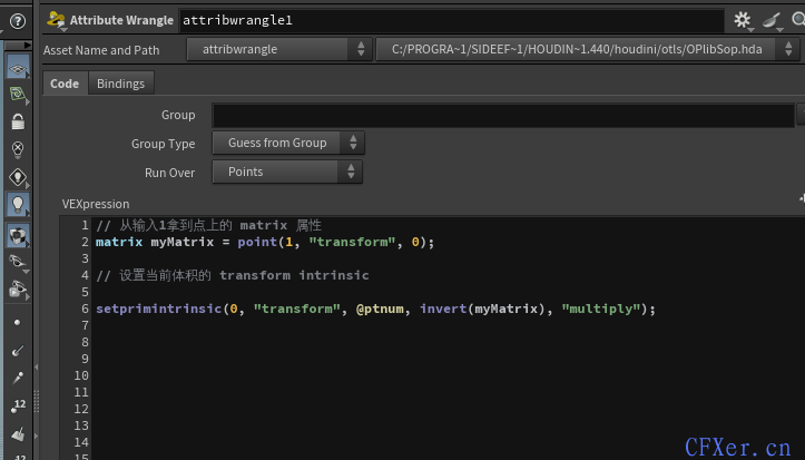 setprimintrinsic(0, "transform", @ptnum, invert(myMatrix), "multiply");