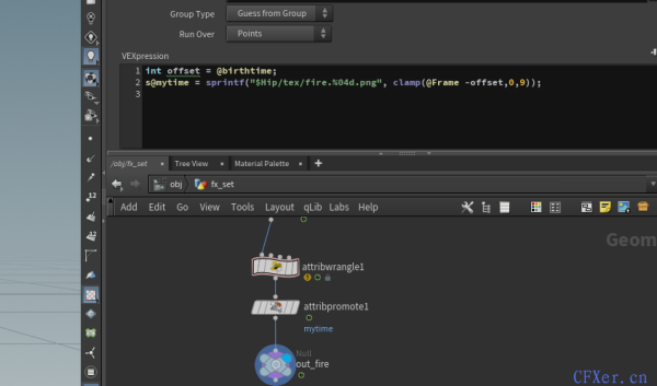 1。需求是 粒子随机出生 根据粒子出生的时间去给面片播放贴图序列 直接自己指认贴图路径上写表达式函数并不能生效,只有自sop里调用 读取属性给到路径上才可以。